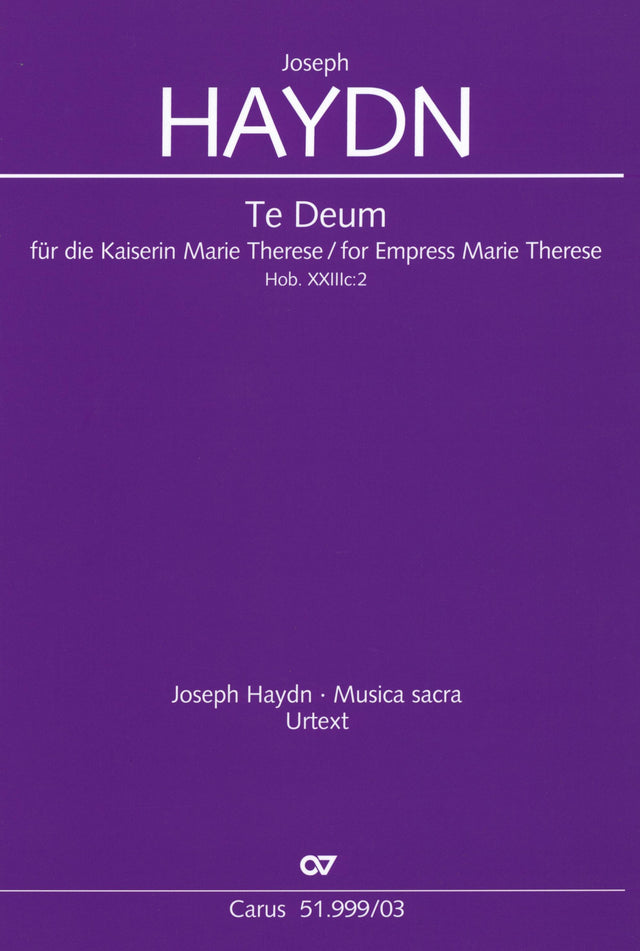 Haydn made two settings of the Ambrosian song of praise the Te Deum. The second of these was written for the Empress Marie Therese, to a commission from the court of Vienna; a work of Haydn's last period, it dates from 1800. Its large orchestra gives this work, which makes no use of solo singers, a particular splendour of sound skin to that of the choruses in Haydn's Creation.
