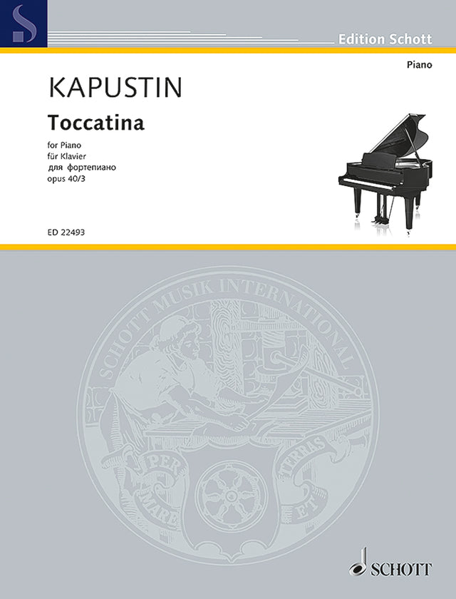 The virtuoso Toccatina from the 8 Concert Studies, Op. 40 is most popular piano piece by Kapustin. On YouTube one can find recordings of numerous pianists. Its use in the opening credits of the computer game Gran Turismo 5 Spec 2.0 has been very conducive to the great popularity of the piece.