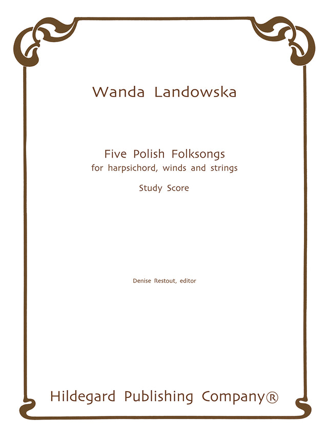 These folksong settings by world-renowned harpsichordist, Wanda Landowska, evoke the Polish countryside where she spent much of her childhood. The settings are scored for harpsichord, flute, oboe, bassoon and occasionally strings in homage to the fondness of woodwinds and bagpipes. When the scores of the settings were confiscated during World War II, Landowska reconstructed them from memory, dictating to editor Denise Restout.