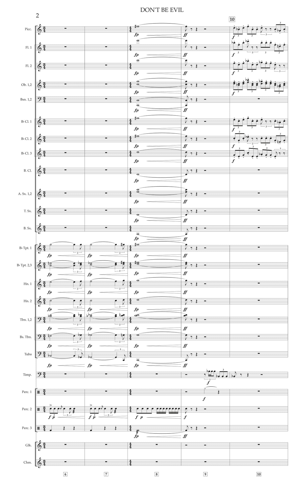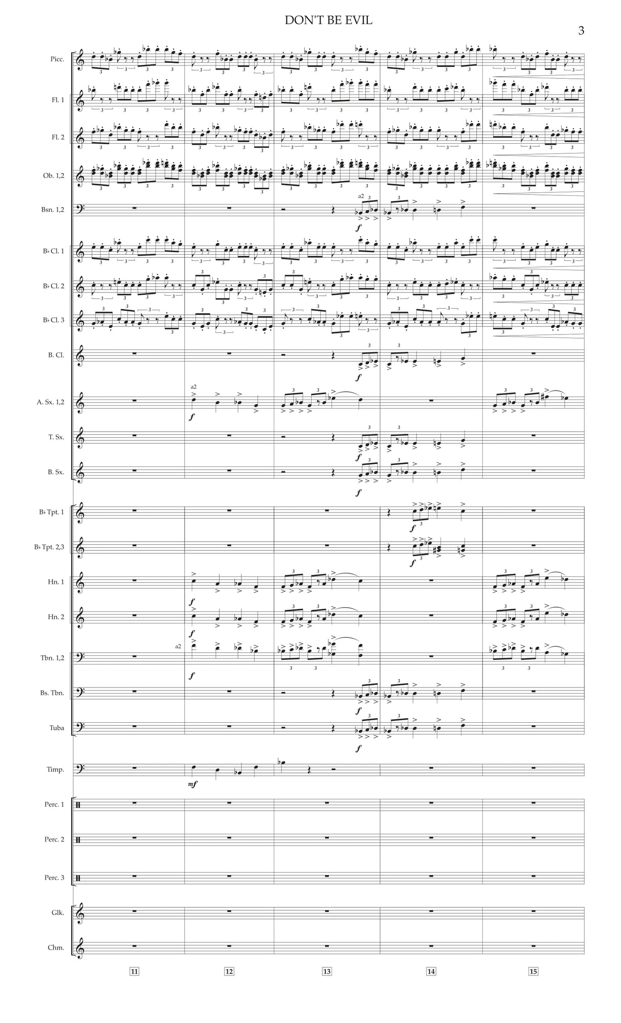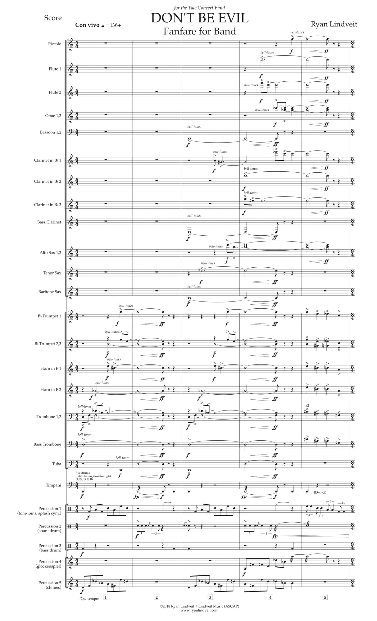 Don't Be Evil: Fanfare for Band was premiered by the Yale Concert Band (Ryan Lindveit, guest conductor) on April 13, 2018 in Woolsey Hall in New Haven, CT.