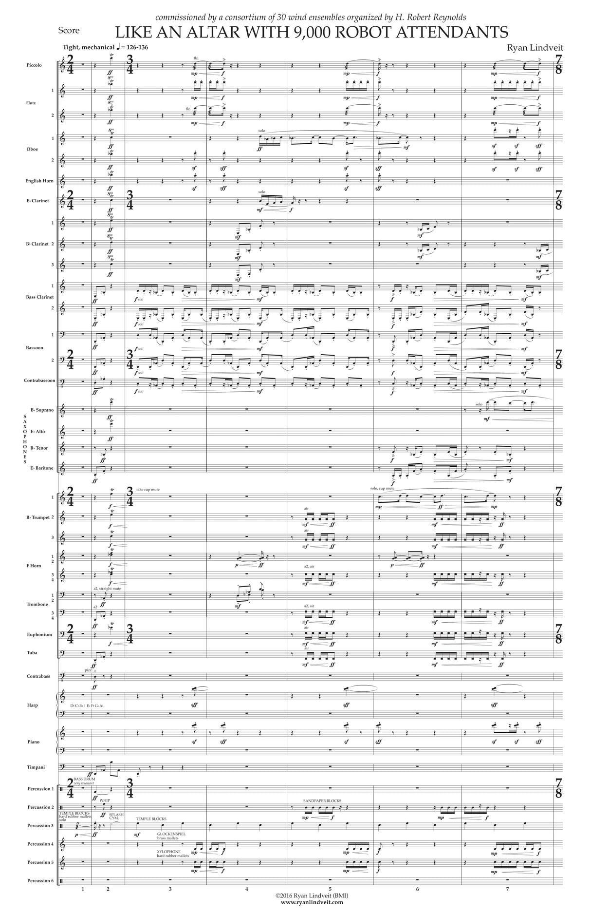 Like an Altar with 9,000 Robot Attendants , Ryan Lindveit (2016) 6'" for wind ensemble