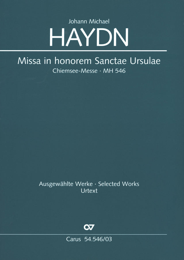 Among Haydn's over thirty settings of the Latin Ordinary, the Missa in honorem Sanctae Ursula occupies an outstanding position, which, according to the autograph, was completed on 5 August 1793. This Mass has been referred to as the most "Mozartian" of all his masses. With its song-like melodic character, the unity of the motivic material and the harmonius balance between festive and reflective sections this Mass is one of Haydn's most successful and inspired works. This work, which in addition to the usual Salzburg "church trio" includes two trumpets and timpani, belongs to the category of "Missa solemnis." The popular nickname Chiemsee-Messe is bound up with the history of the origins of the work. Haydn wrote the Mass for the musically gifted nun, Sebastiana Oswald, who belonged to the Benedictine cloister of Frauenchiemsee. This work soon found widespread acceptance beyond the originally intended sphere of its origins, as is indicated by the numerous copies found in Austrian convents.
