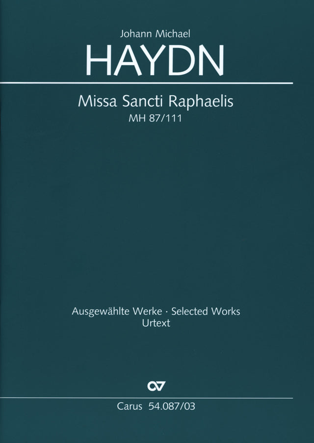 Michael Haydn composed three of his masses in honor of the holy archangels – St Michael, St Gabriel, and the Raphaelismesse in honor of St Raphael now published. By avoiding the use of vocal soloists, it is one of the genre of "Missa in pieno". Four trumpets and two ad lib oboe parts added later by the composer give the work a festive sound in the baroque tradition. At the same time, elements of the 'sensitive style' feature too. The Gloria and Credo exist in two settings, a short version with polytextual passages and a longer version arranged by Haydn himself. The Carus edition, based on authentic performance material in St. Peter's Monastery in Salzburg, contains both versions, with the longer version published here for the first time.
