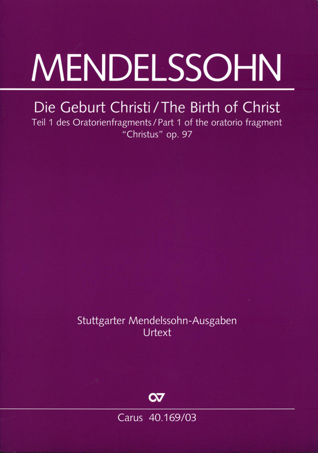 Part 1: Die Geburt Christi, Part 2: Das Leiden Christi Christus is a fragment of an oratorio which Mendelssohn never completed. He had probably planned a third section to follow the two sections Die Geburt Christi and Das Leiden Christi. Die Geburt Christi concentrates on a four-part choral section, introduced by two short sections for soloists.