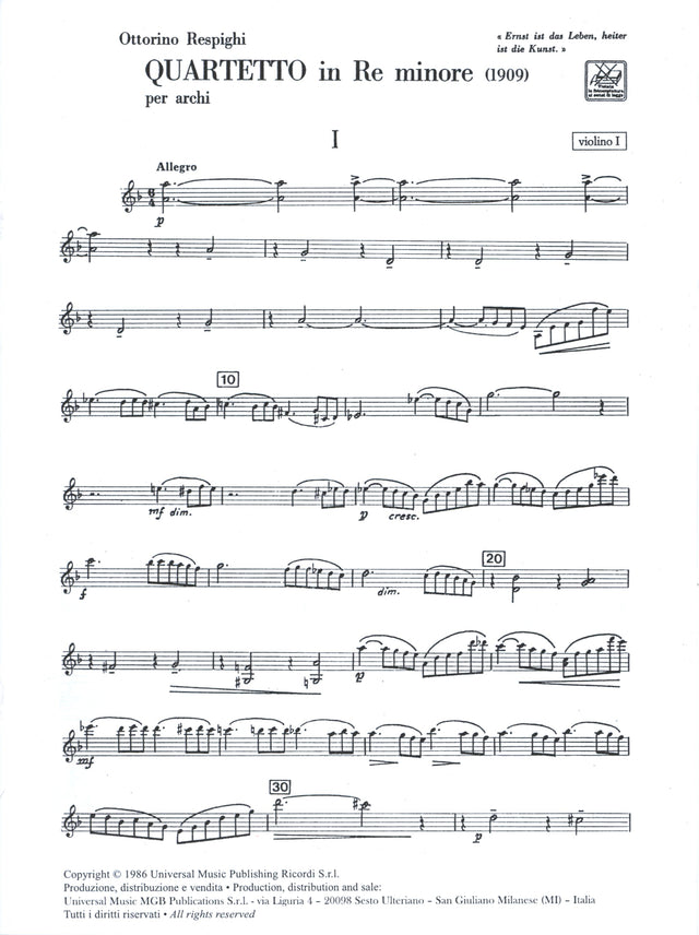 Respighi: String Quartet in D Minor