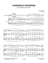 Highly regarded for the finesse and elegance of her spirited, humorous writing, the composer Jeanine Rueff (1922–1999) wrote numerous works for a variety of instruments, collaborating also with the renowned Marcel Mule, a great classical saxophonist known worldwide. Among her compositions for saxophone, three which have been played throughout the globe stand out: the Concertino for alto saxophone and string orchestra (1951), the Sonata for solo alto saxophone (1967) and her Concert en quatuor (1962). A good part of her catalogue is devoted to pedagogical pieces, like this lovely Chanson et Passepied (1951) for alto saxophone and piano which has become a must for players at an intermediate (after ap¬proximately 6 years of lessons) level. Introduction and notes on interpretation in French and English by the saxophonist Nicolas Prost. – New engraving.