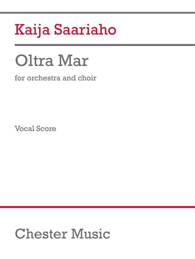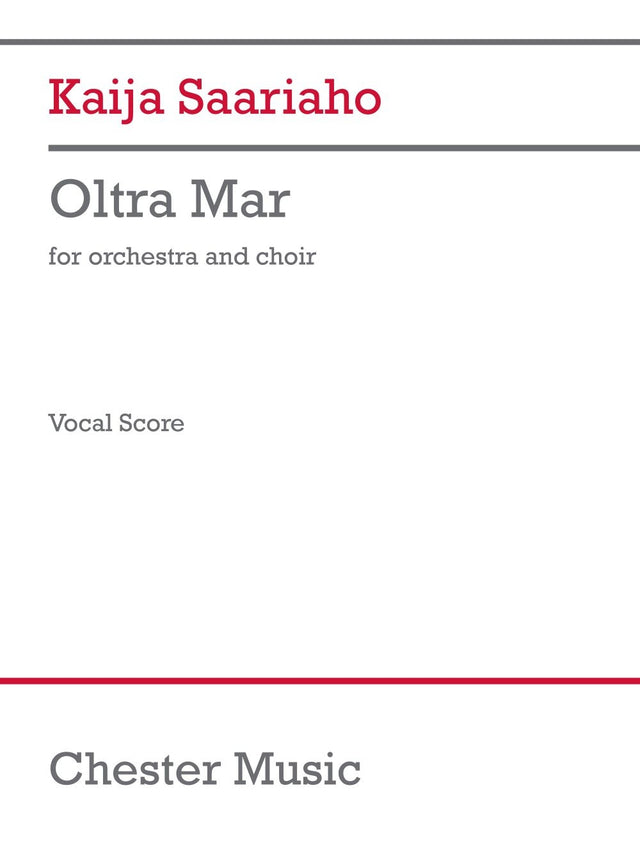 Kaija Saariaho's Oltra Mar for chorus and orchestra (this edition is a piano reduction) was commissioned by the New York Philharmonic and had its world premiere in 1999 under the baton of Kurt Masur. It includes text by Amin Maalouf and Abou Said and explores themes of love, death and the sea. It is partly sung in French, and partly in vocalise.