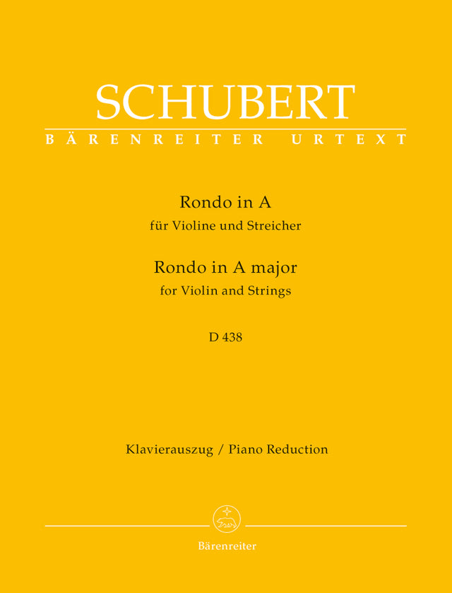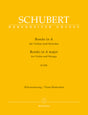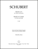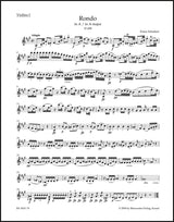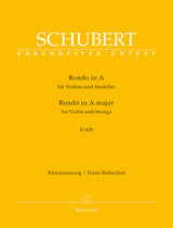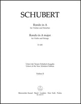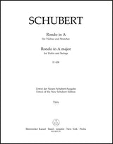 Schubert's popular Rondo in A Major for violin and strings, which dates from 1816, is one movement that includes both lyrical and virtuosic solo passages. The violin part has fold-out pages to reduce page turns.
