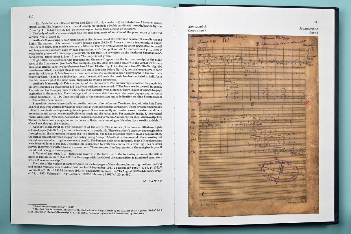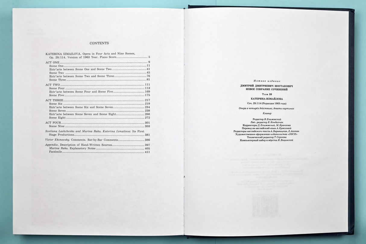 The full score of the first version of the opera was not published during Shostakovich's lifetime. in the second half of the 1970s, the composer's widow, Irina Shostakovich, sent the copy of the manuscript she had to Mstislav Rostropovich for performing and recording. in 1978, this version of the work was recorded by Rostropovich and the musician handed the notation he had to Hans Sikorski Publishers. The publisher also received world rights from the heirs to hire out the first version of the opera. Later, when conditions developed in Russia for performing and publishing the first version of the work, Hans Sikorski Publishers handed a copy to DSCH Publishers for hire of the first version of the opera in the composer's homeland. Nowadays, the first version of the opera has essentially replaced the second version on the stages of all of the world's opera theatres.
