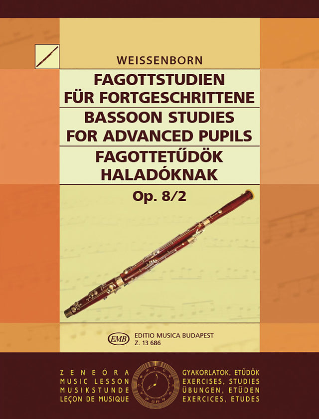 J. Weissenborn bassoon studies in two volumes contain the basic, indispensable pieces for the instruction of this instrument. As an auxiliary material it may be used right from the beginning and up to the point of advenced studies. The two volumes include the most varied studies worth of our attention musically as well. They cover the entire range of the problems of the instrumental technique starting from scale and chord breaking in an extremely well surveyable and systematic arrangement. What makes this edition particularly valuable is the presence of a fingering chart and table of trills which are supplemented by precise, detailed and useful advice.