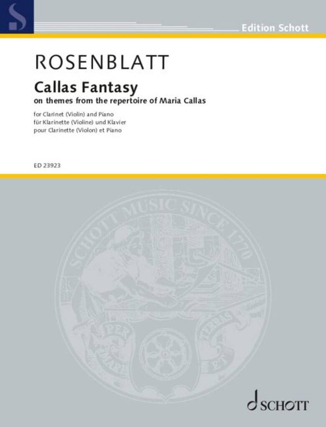 A musical journey through the world of opera, inspired by the legendary Maria Callas. This virtuoso fantasy for clarinet/violin and piano combines famous opera hits with modern jazz elements. Includes separate parts for clarinet and violin.