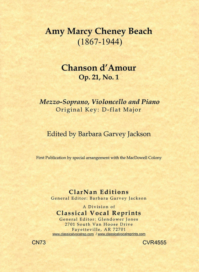 Beach: Chanson d'amour, Op. 21, No. 1