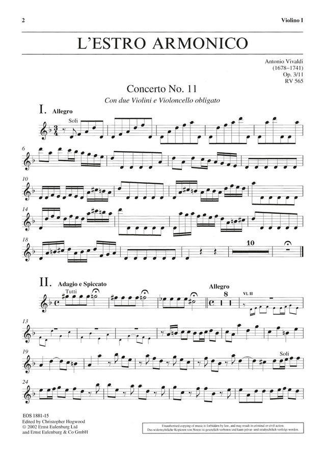 Vivaldi: L'Estro Armonico, RV 565, Op. 3, No. 11