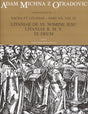 The collection´s individual compositions probably date from different periods. for its part, the Sacra et litaniae was first published in 1654, like most of Michna´s production by the Academic Print of the Clementinum in Prague. The Litaniae de SS. nomine Jesu is economical in terms of duration, and is characterized by restrained expression, with the alternation of tutti, concertante soli and double choir, that last feature assigning it a solemn note. The vocal combination requires two four-voice choirs (each with four "proper" soloists), the prescribed instrumental accompaniment consisting of two violins "cum aliis instrumentis ad libitum" - here, four violas. The Litaniae B.M.V. has a five-voice choir (with two sopranos) and soloists. The instrumental accompaniment consists of two violins, a viola, plus further optional instruments "ad libitum." The Te Deum for four-voice choir with soloists, two obbligato violins and three trombones ad lib., was written for a now unknown festival occasion.The publication is introduced by the informative preface by Jirí Sehnal and critical report (V. Belský).