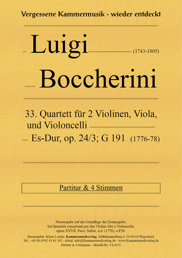 Boccherini: String Quartet in E-flat Major, G 191, Op. 24, No. 2