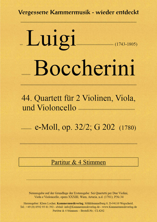 - Work: String Quartet in E Minor, G 202, Op. 32, No. 2
