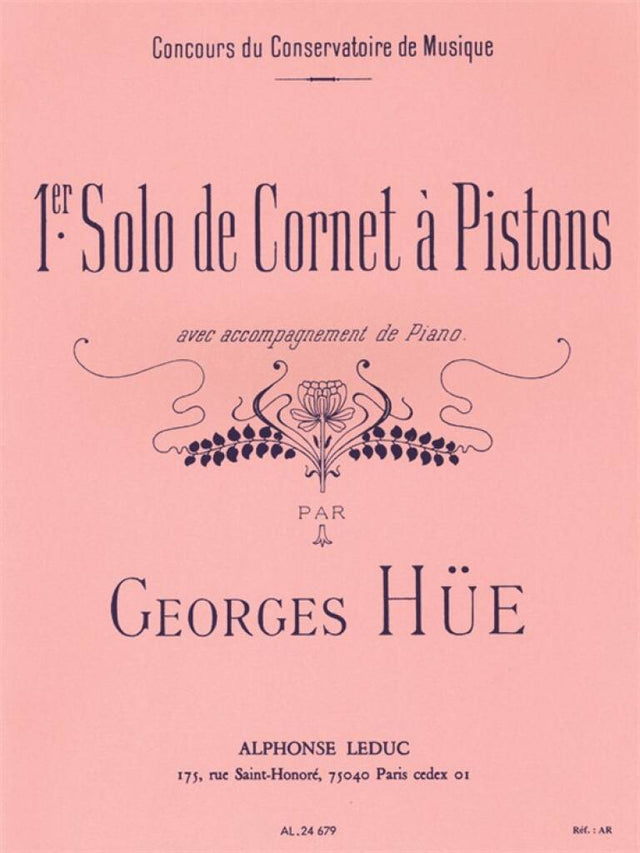 "Composed by Georges Hüe for the Conservatoire Contest (1900), 1st Solo of Cornet is a piece for Cornet and Piano accompaniment, dedicated to J. Mellet. Quite difficult (6 _), it would demonstrate well the skills acquired by an advanced player during a contest but can also be performed for a recital as it's eminently enjoyable.