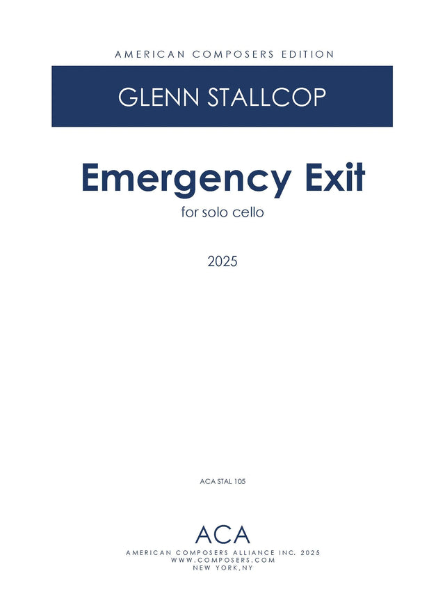The title occurred to me when I was about halfway through writing the piece. Unlike many composers, I tend to write my music from front to back (instead of piecemeal or in sections). in writing this piece, I was through the first 50-60 bars and concerned because what I planned to do was scoping out at about 8-9 minutes, which was nearly twice as long as I had hoped. It was at that point that I had the idea for the short pizzicato section in the middle. I saw it as "a way out" or an "emergency exit." At the time, which was the end of January 2025, many of us were looking for an emergency exit anyway, and so the title stuck. Emergency Exit is about four and a half minutes in length and was written at my home in Phoenix.