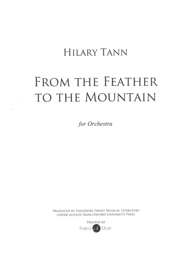 The image of the title comes from a recorded statement by artist, Arnie Bittleman - "I found a feather while walking down a road. The feather, if you look closely, has a landscape, a cloudscape in it" (Cambridge, NY, 1970). The piece is in one continuous movement with three main sections -- cloudscape (fast, light, woodwind-dominated), landscape (slow, string-dominated), and mountain-scape (fast, rhythmic, brass and percussion to the fore). "Walking" passages (with hints of NY folksongs) link the sections. – HT