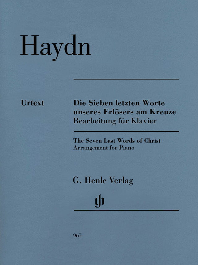 In 1786 Haydn was commissioned by the cathedral canon in Cádiz to write meditative music, which was to be performed alternately with readings of Christ's last words on Good Friday.Already in the spring of 1787 the orchestral version and an arrangement for string quartet were published by Artaria in Vienna. Barely ten years later he also made an oratorio version. Although Haydn did not undertake the version for "Clavicembalo o Forte Piano" (harpsichord or piano) himself, he received the proofs and praised the piano reduction as being "very good and conceived with particular care". in addition, this expressive work is also extremely well-suited to being performed on the organ.
