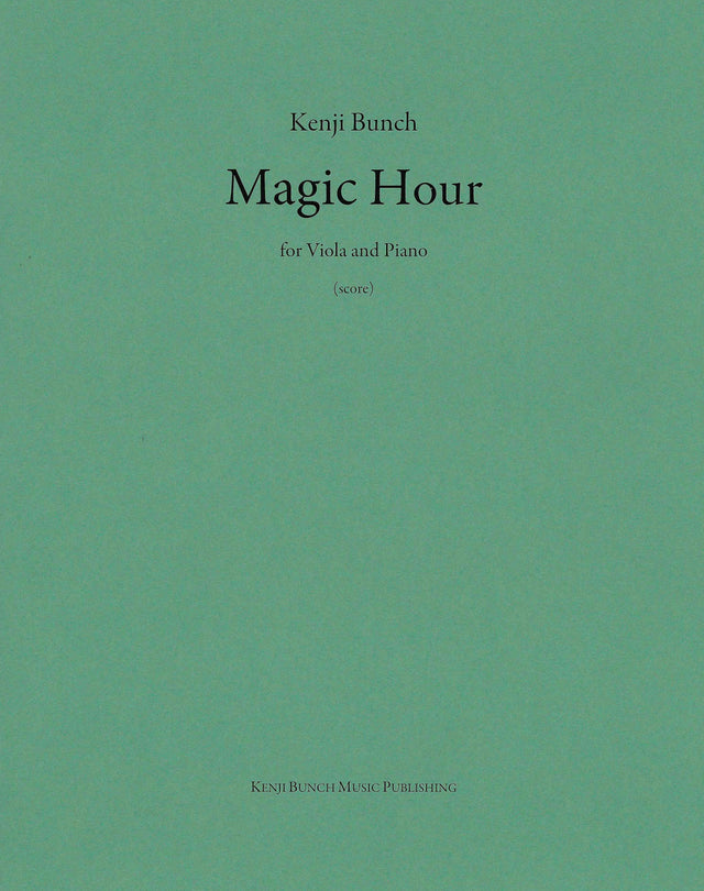 I originally wrote Magic Hour in 2001 as a short interlude in my piano trio Swing Shift, a work inspired by New York City at various hours in the nighttime. The "magic" or golden hour is the glorious fleeting moment at sunset on a clear day when the entire city is bathed in a warm, glorious glow. Over the years, the short (2 min.) work took on a life of its own and during a moment of pandemic-induced productivity, I arranged it for viola and piano so Monica and I could have something fun to do.