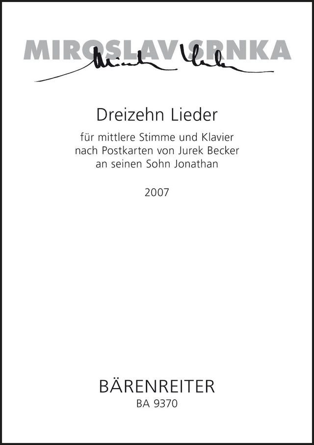 - Work: 13 Songs (after postcards by Jurek Becker to his son Jonathan) (2007)