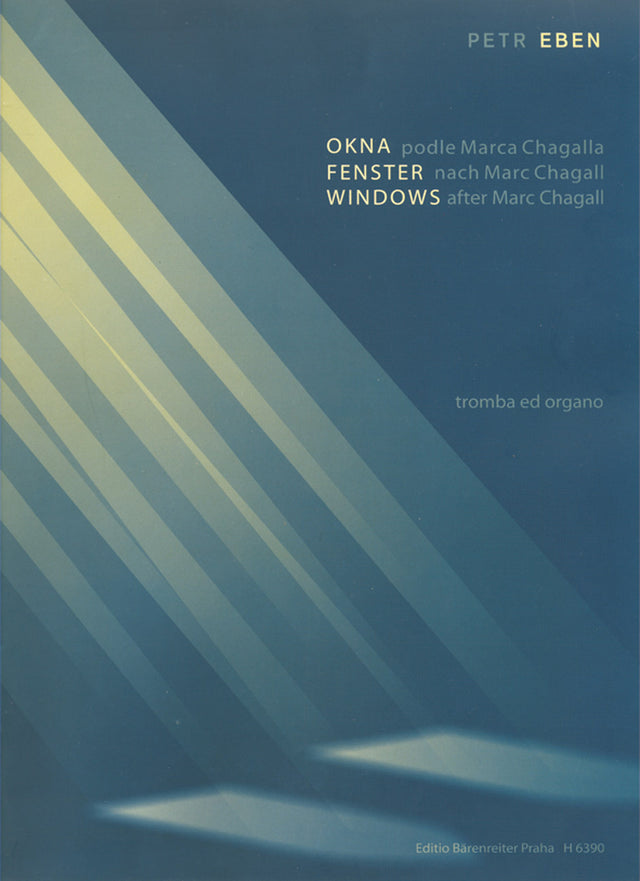 Fine art has always been a prominent source of inspiration for Petr Eben (1929-2007). Chagall's stained-glass windows for the synagogue in Jerusalem gave an impulse for the four movements for trumpet and organ commissioned by the city gallery in the West Bohemian town of Cheb. The author commented on his choice of instruments: "The solemnity of the large panes of stained glass made me imagine the sound of the organ, and the intensity and brilliance of the sheaves of bright colours called for the shrill tone of the trumpet." Eben combines the two instruments in an original manner: both parts retain a great deal of independence, progressing in their own rhythmic patterns, intersecting in places. The modal composition typical of Eben's method is confronted here with atonality, enabling the final unison of the two instruments to sound with a monumental effect. Since its origin in 1976 Windows has been one of the most frequently performed pieces by the composer. The individual movements of the cycle are named after colours: The Blue Window, The Green Window, The Red Window and The Golden Window. The organ part was revised by Milan Slechta, the trumpet part by Ladislav Kozderka.