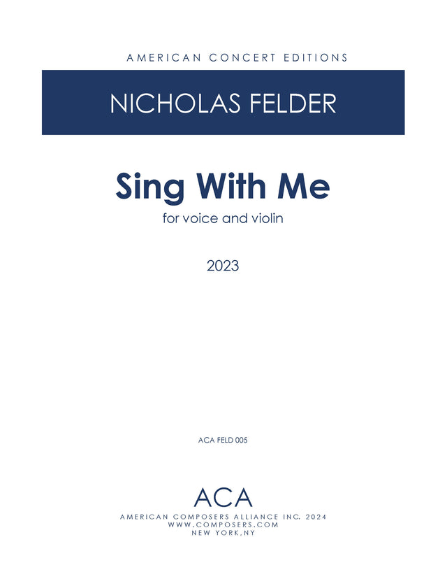 Sing with Me is a prayer and meditation. A journal entry. A call to action. It asks for a simple duet with a friend while also urging a need for community when advocating for people's rights and wellbeing as well as your own. This piece encapsulates a love that is contemplative and vulnerable. Bittersweet and peaceful. A love that is warm and fierce and weary and hopeful. The music illustrates love as a process""something that seems elusive at times but then may return when we ask for it. Written for and commissioned by Matt Albert, Chair of Chamber Music and Associate Professor of Music at the University of Michigan.