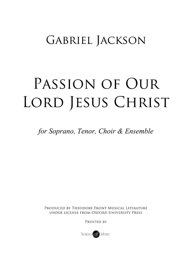 - Instrumentation: SATB Choir, Soprano, Tenor, Chamber Orchestra