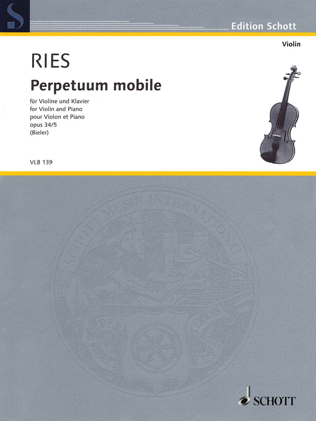 Composer, publisher and violinist Franz Ries (1846-1932) composed Perpetuum mobile around 1870. It is the fifth movement from his Suite No. 3 for violin and orchestra (or piano). Late Intermediate Level.