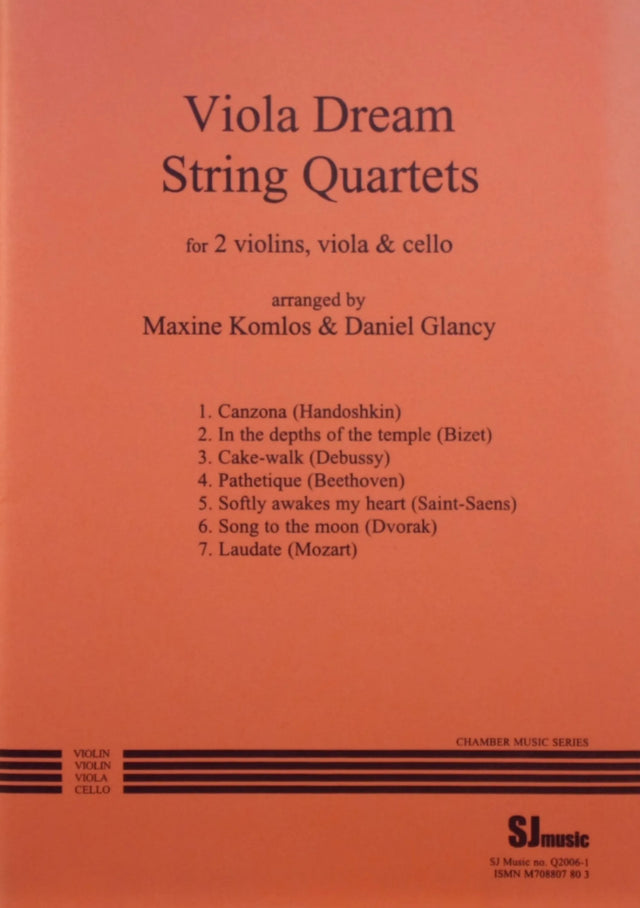 This is a fun collection of seven string quartet arrangements of famous pieces of music, including Debussy's "Cake walk" and the aria "In the depths of the temple" from Bizet's "The Pearl Fishers". The arrangements feature prominent viola parts (and very good 2nd violin parts too!) and were created by Maxine Komlos, with assistance by Danny Glancy, as a result of most composers only giving the viola occasional short solos in their works.