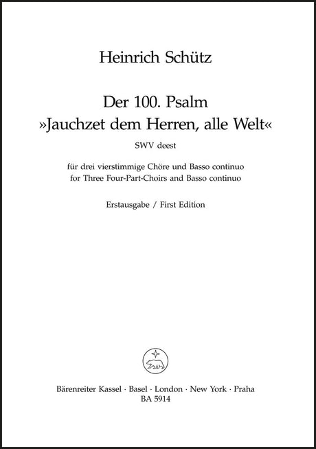 Options: Full Score, Choral Score – Psalm 100 "jauchzet Dem Herren Alle Welt“, Swv...From $ 7.75Unit price /UnavailableBärenreiter
