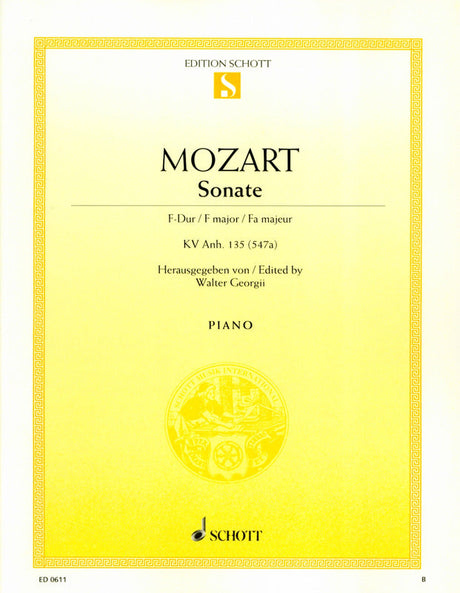 Mozart: Piano Sonata in F Major, K. 547a (Anh. 135)
